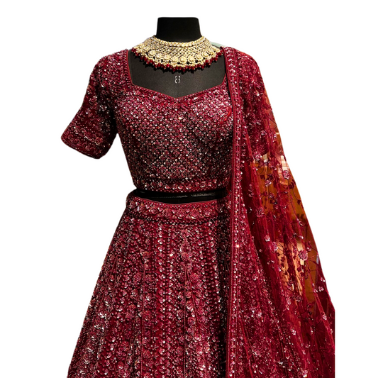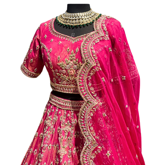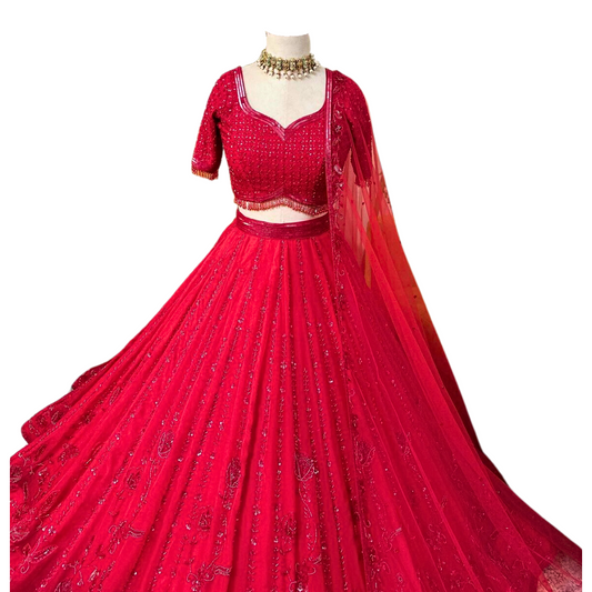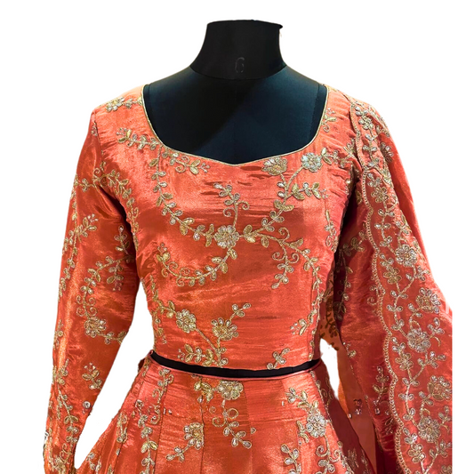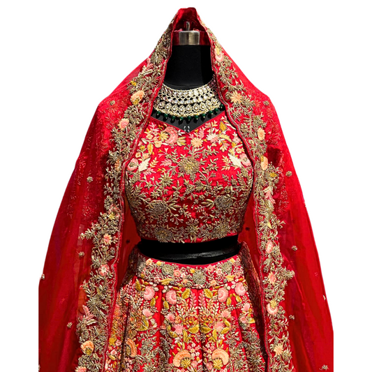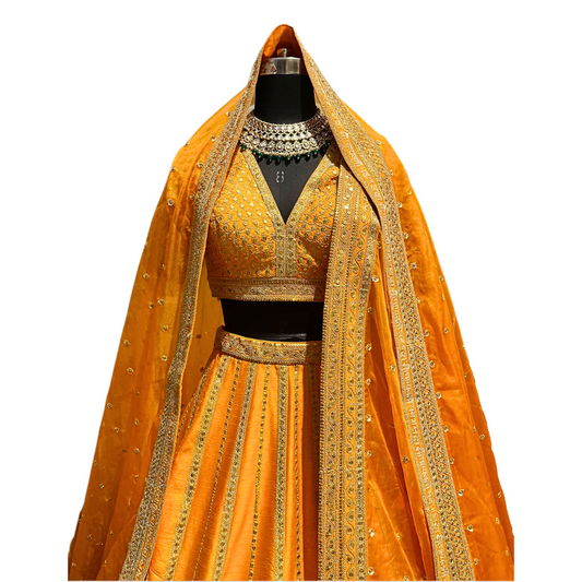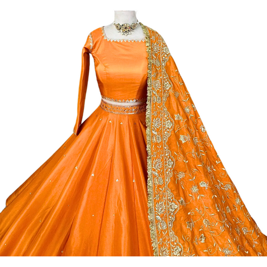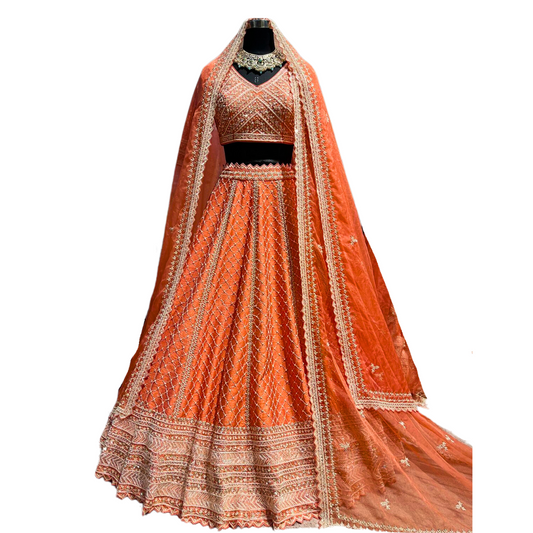 Traditional Indian Bridal Orange Lehenga with 2 Dupattas